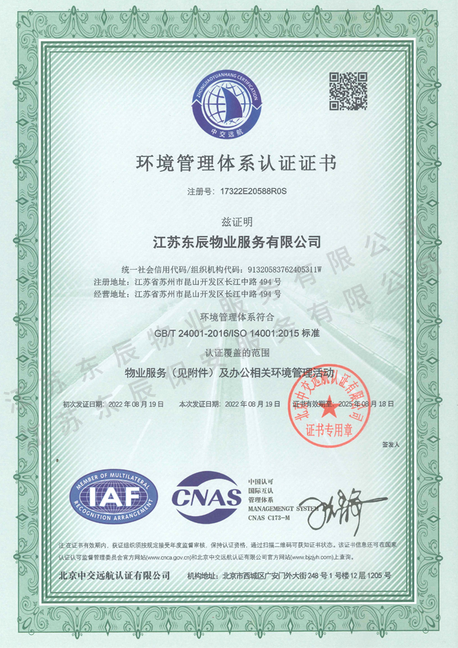 2022-2025年環(huán)境管理體系認證證書