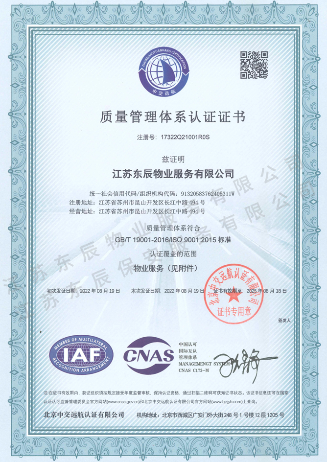 2022-2025年質量管理體系認證證書